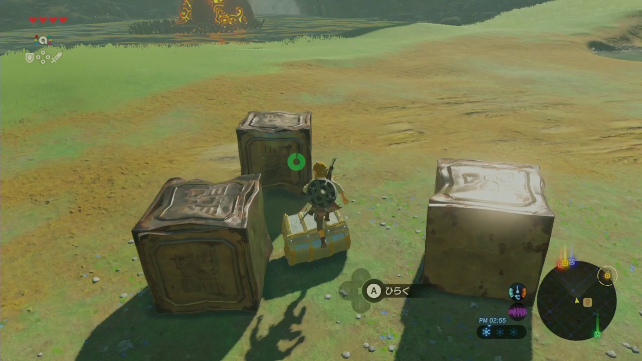 これは、リンクのamiiboとガーディアンのamiiboを使ったときです。最初のリンクのamiiboで、Aボタンが効かなくてアイテムを拾うことができていません。その後のガーディアンのアイテムを宝箱から取り出すまでのグダグダは、コントローラの異常とは、あまり関係ありません(^^;)。