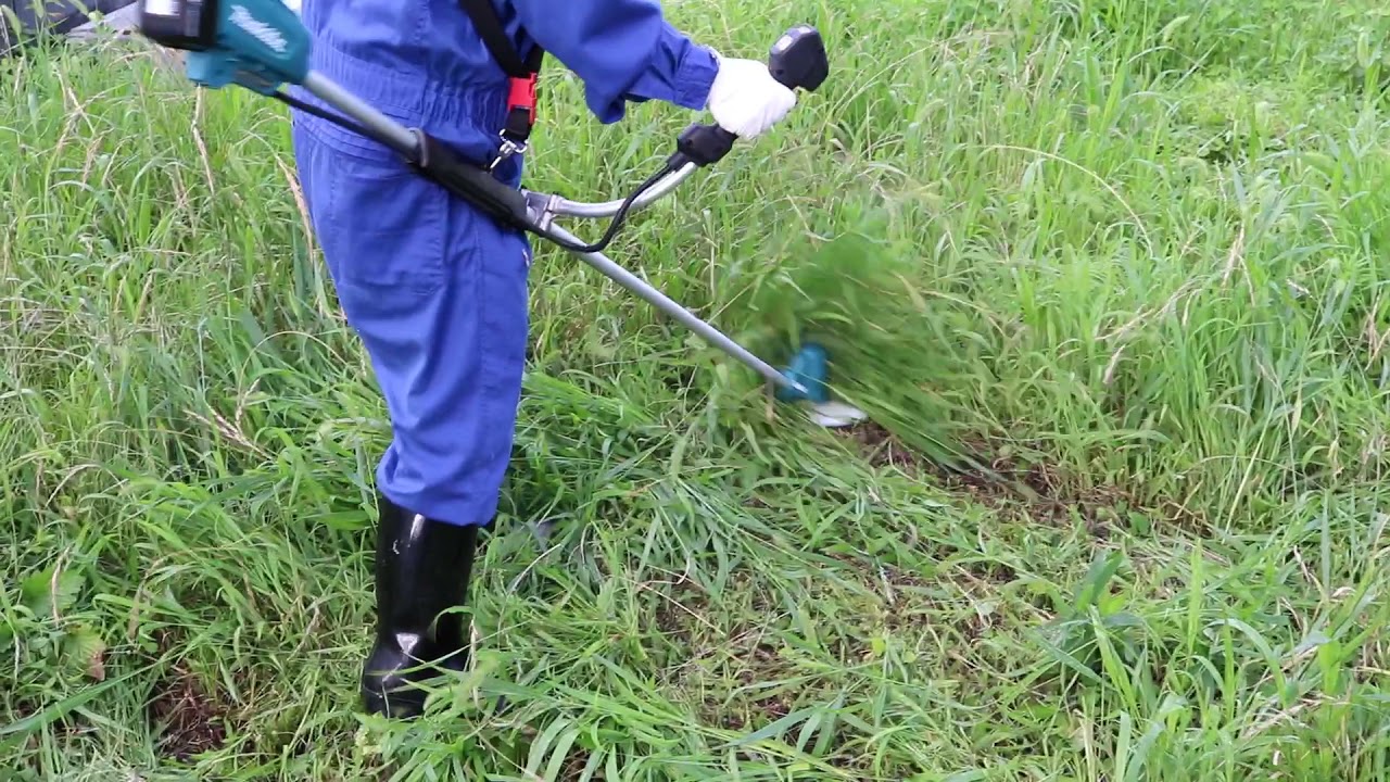 電動工具のバッテリーを使う草刈り機は、便利だ。